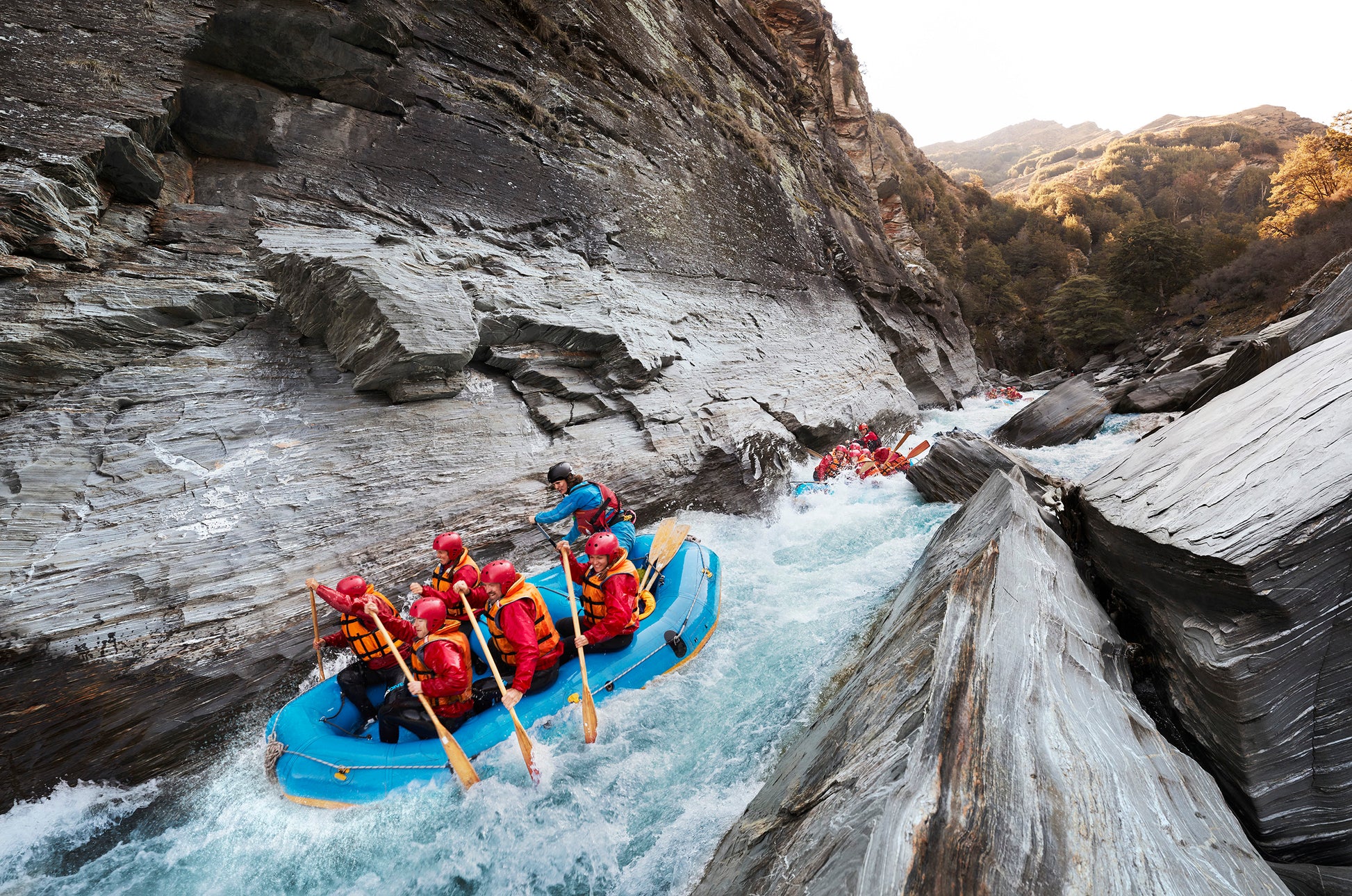 Join us on the iconic Shotover River for a whitewater rapid adventure. Start with an unforgettable coach trip through Skippers Canyon, famous for its exciting cliff edges, enough to get your adrenaline pumping before we hit the water.
